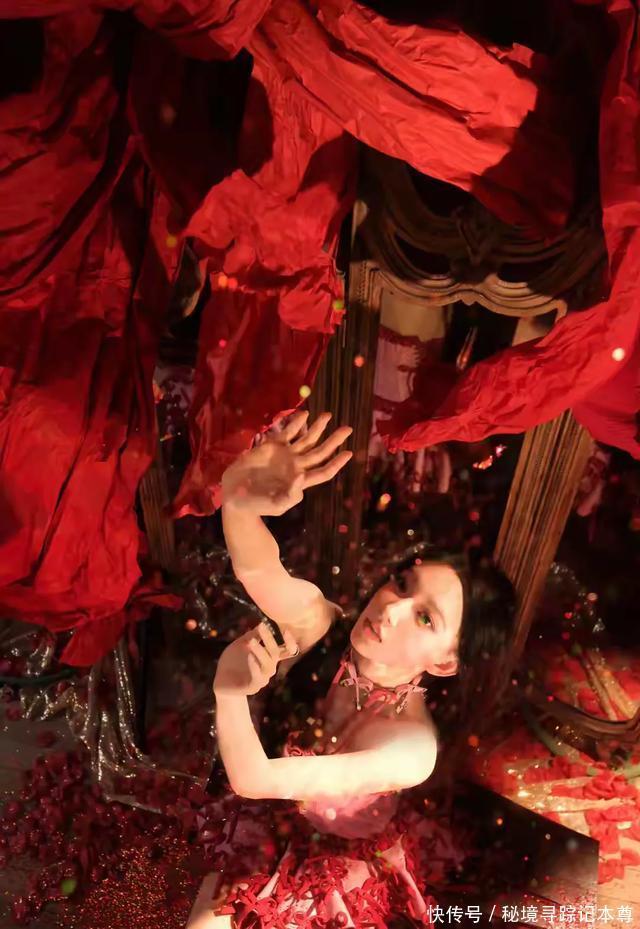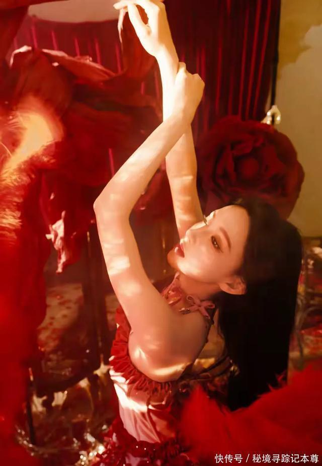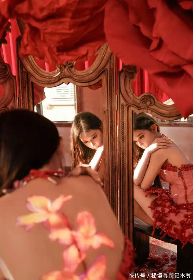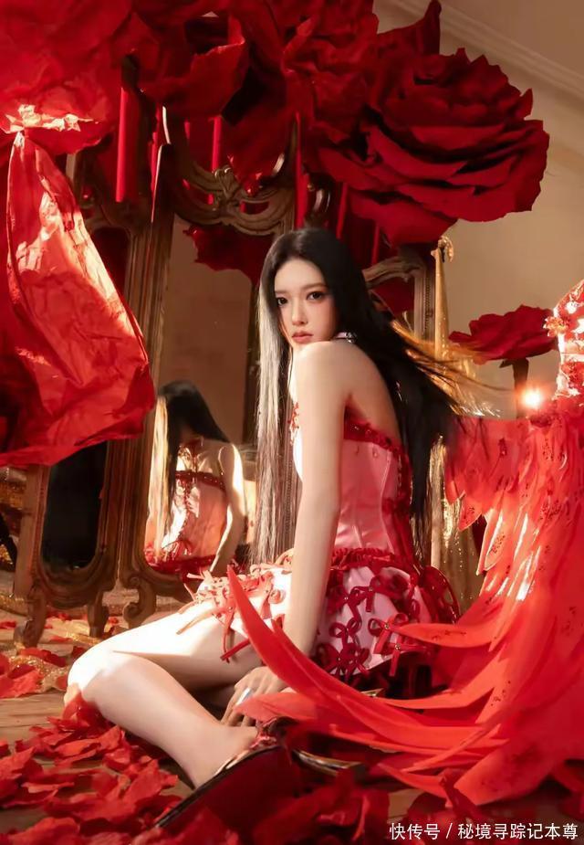 程潇的这组红裙写真,氛围感属实拿捏到位了。       身处巨型红玫瑰簇拥的幻境之中,身后的复古镜面与散落的花瓣,将浪漫氛围拉满。她身着粉白底色的十字绑带抹胸裙,红色绸带从身侧垂落,既有少女的娇俏,又透着一丝冷艳的野性。       乌黑长直发披肩,妆容清透却眼神锐利,赤脚踩在花瓣上的姿态,宛如坠入玫瑰园的暗夜精灵。红与白的碰撞,柔与刚的结合,每一处细节都美得很有画面感。